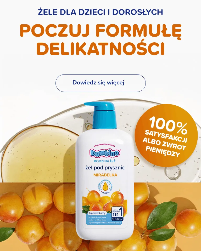 Od 70 lat Bambino troszczy się o czułą pielęgnację, towarzysząc rodzinom w najpiękniejszych chwilach. Rośniemy razem z Wami – począwszy od delikatnych kosmetyków dla niemowląt, przez pełną radości serię Dzieciaki, aż po uniwersalną serię Rodzina. Czułość to tradycja, która łączy pokolenia. A nasze kosmetyki, które powstają lokalnie w poznańskiej fabryce, pod czujnym okiem specjalistów Bambino, mają dbać o wszystkich członków rodziny, niezależenie od wieku. W końcu my też jesteśmy rodziną… produktów pielęgnacyjnych!