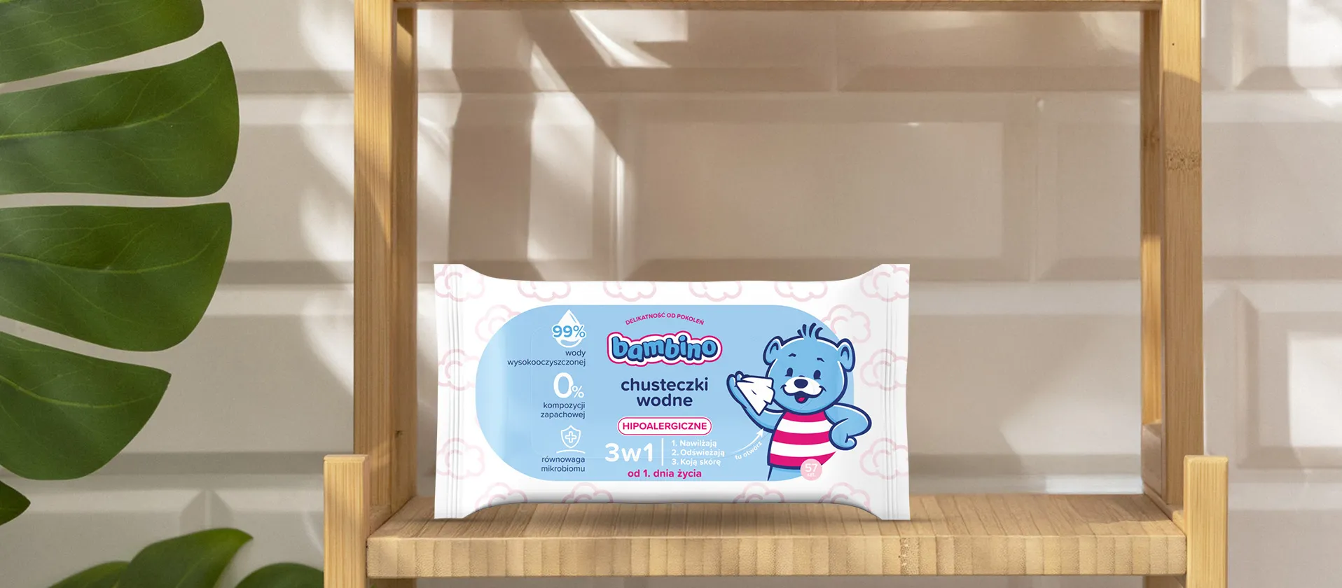 Chusteczki wodne 3w1 delikatnie nawilżają, odświeżają i koją skórę dziecka. Doskonałe do codziennej pielęgnacji – łagodzą podrażnienia i pozostawiają skórę miękką, czystą oraz pełną świeżości.